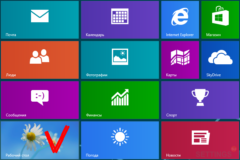 Шаг 2. На рабочем столе подведите курсор мыши к правому нижнему либо верхнему углу.