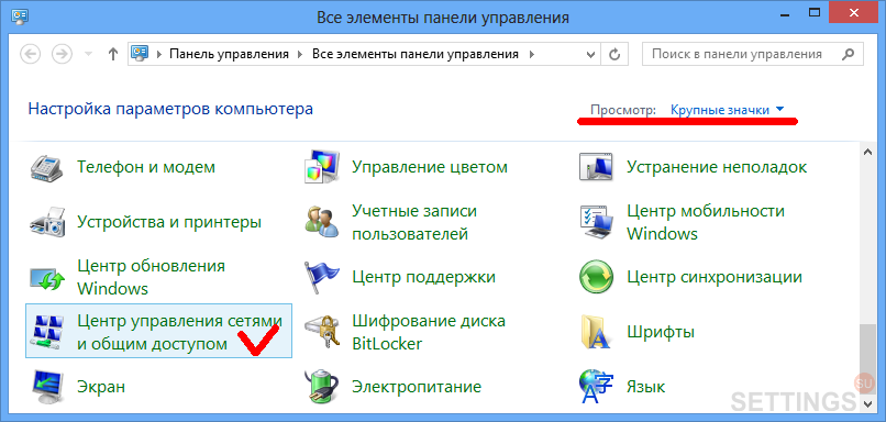 Шаг 4. На панели управления в меню "Просмотр" выберите "Крупные значки"