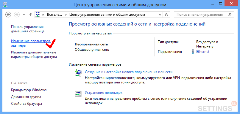 Шаг 5. В открывшемся "Центре управления сетями и общим доступом"