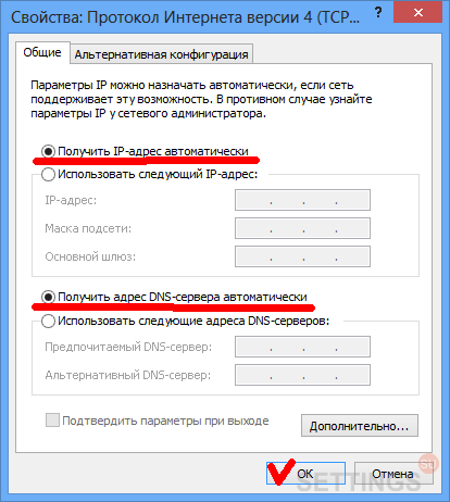 Шаг 8. В свойствах протокола установите "Получить IP-адрес автоматически"