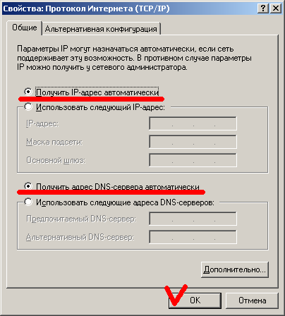 Шаг 4. В свойствах протокола установите "Получить IP-адрес автоматически"